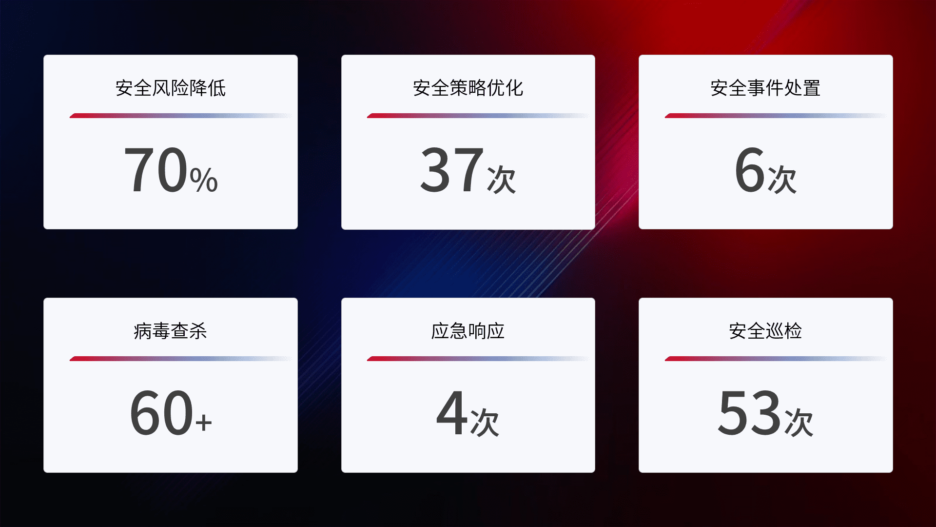 提供全面的安全事件报告体系,,,包括处置报告、、、周报、、、、季度和年度总结,,,,结合持续监控,,帮助客户深入了解网络安全状况。。。。